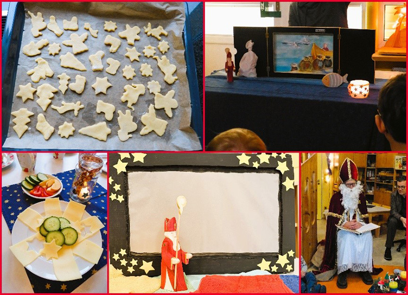 Natürlich wurde vor dem ersten Adventswochenende zusammen mit den Kindern der Adventskranz geschmückt. Mit selbstgemachten Kerzen und frischen Zweigen bereiteten die Kinder die stille Zeit vor. Es wurden Plätzchen gebacken, in den Räumen leuchteten die Lichterketten und eine Nikolausfigur schmückte den Eingang.